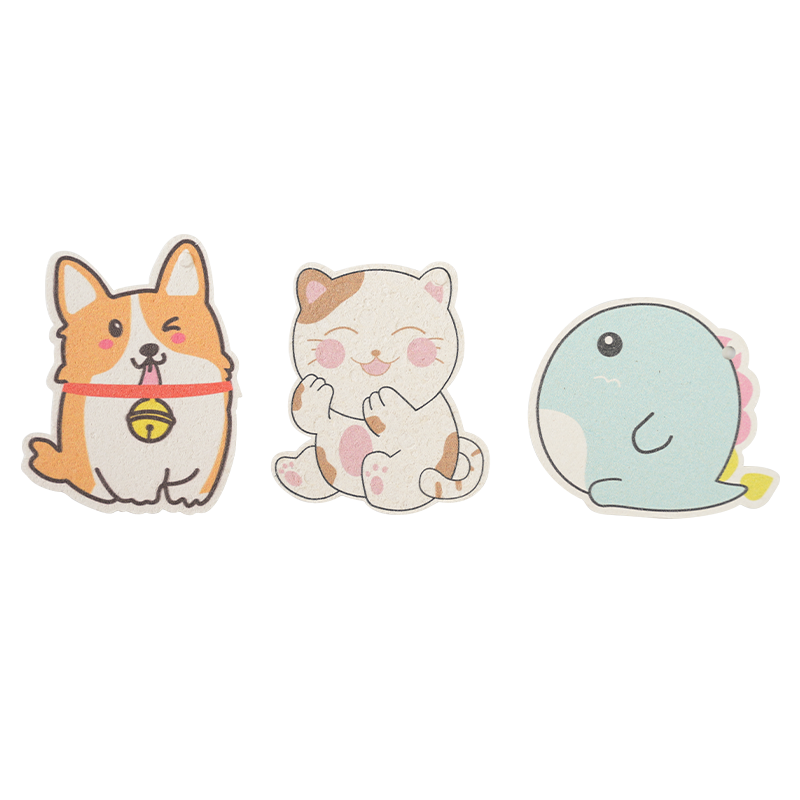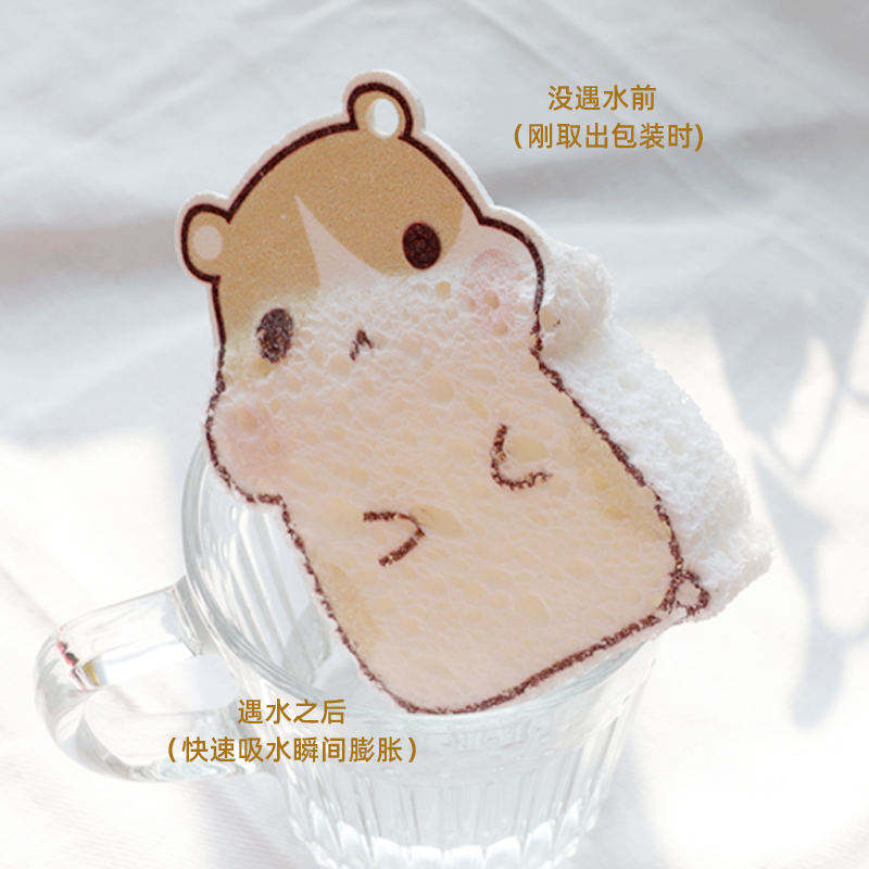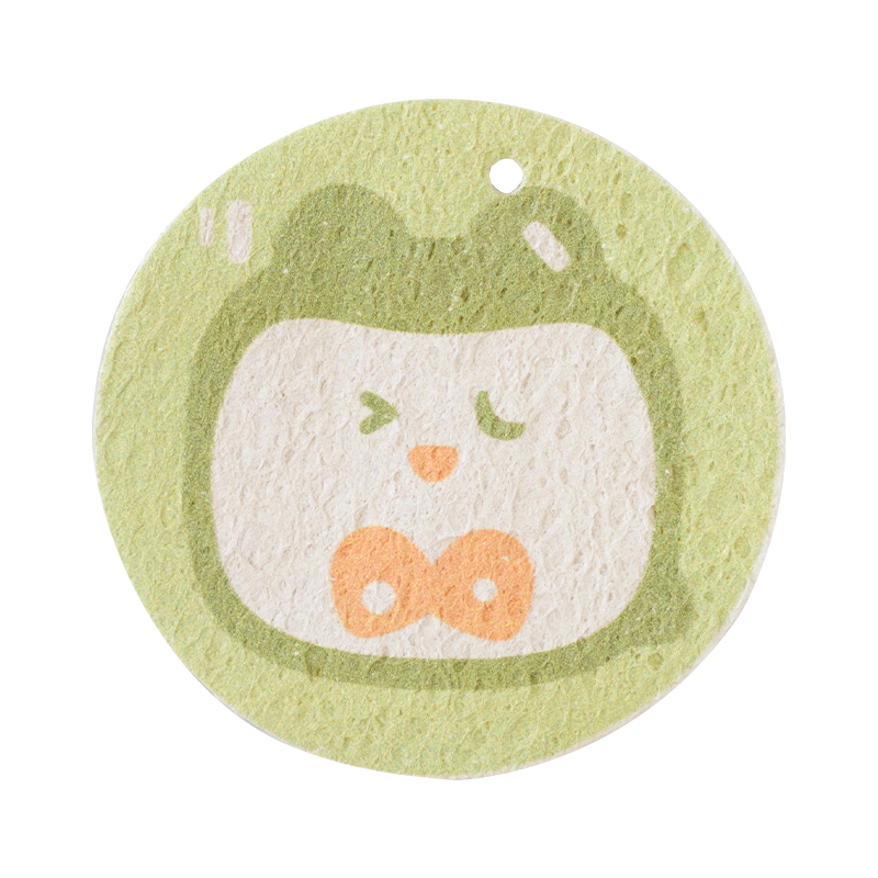 Dopustite da vam pokažem još jedan oblik drvene spužve, komprimirane celulozne spužve. Proizvodi se od pamuka drvene pulpe nakon vrućeg prešanja na visokoj temperaturi. Komprimirana celulozna spužva ne samo da zadržava sve prednosti pamučne spužve od drvene pulpe, već nakon prešanja smanjujemo volumen spužve kako bismo smanjili naknadu za dostavu, također možemo ispisati logotipe ili druge dizajne na površini. To čini čišćenje smješnijim.