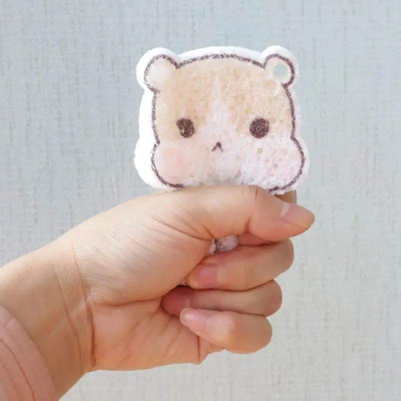 Dopustite da vam pokažem još jedan oblik drvene spužve, komprimirane celulozne spužve. Proizvodi se od pamuka drvene pulpe nakon vrućeg prešanja na visokoj temperaturi. Komprimirana celulozna spužva ne samo da je zadržala sve prednosti pamučne spužve od drvene pulpe, već smo nakon prešanja smanjili volumen spužve kako bismo cijenu dostave učinili niskom, a također možemo ispisati logotipe ili druge dizajne na površini. To čini čišćenje smješnijim.