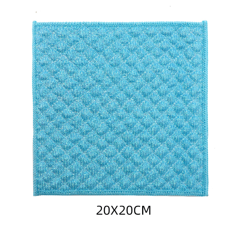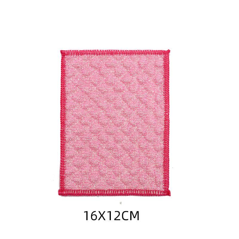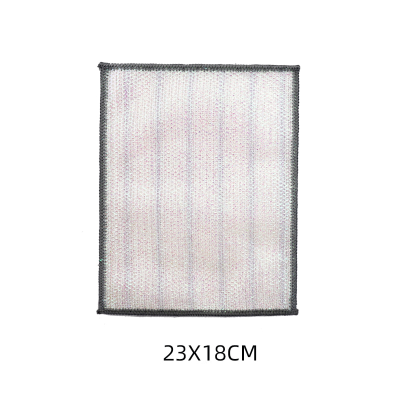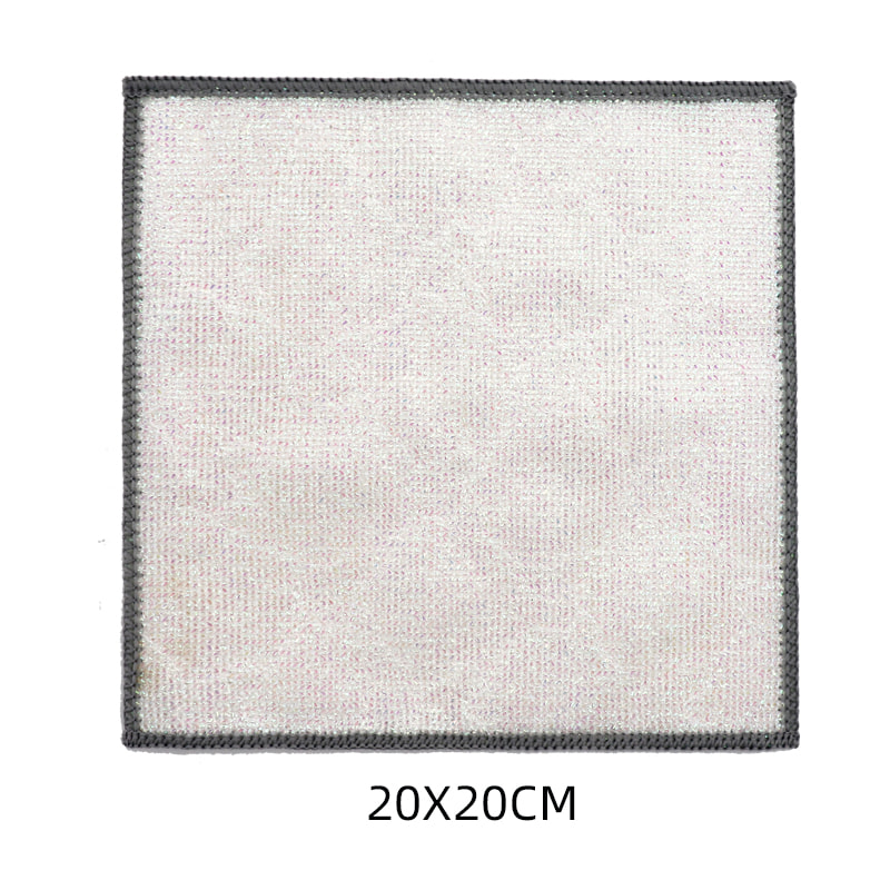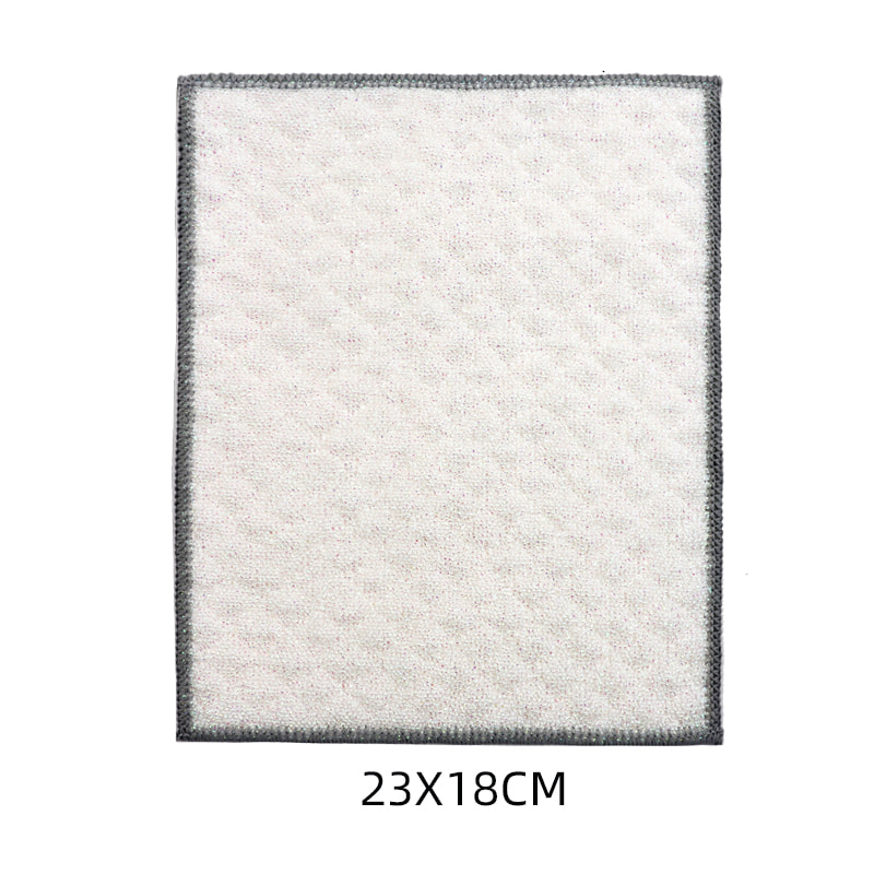 Obojena svilena krpa za ribanje od bambusovih vlakana, jedna strana je šarena krpa za čišćenje sa snažnom sposobnošću struganja, a druga strana je krpa od bambusovih vlakana, koja ispunjava dvostruke funkcije struganja i ribanja s jedne strane; Ne sadrži ulje i snažno upija vodu. Izrađeno je od šarene svile, visokog izgleda i Zou tretmana na površini, što čini da svilena tkanina za čišćenje u boji s jakom snagom struganja ima veću silu trenja, ali ne oštećuje posuđe; Ima dobar učinak čišćenja bez uklanjanja ulja.